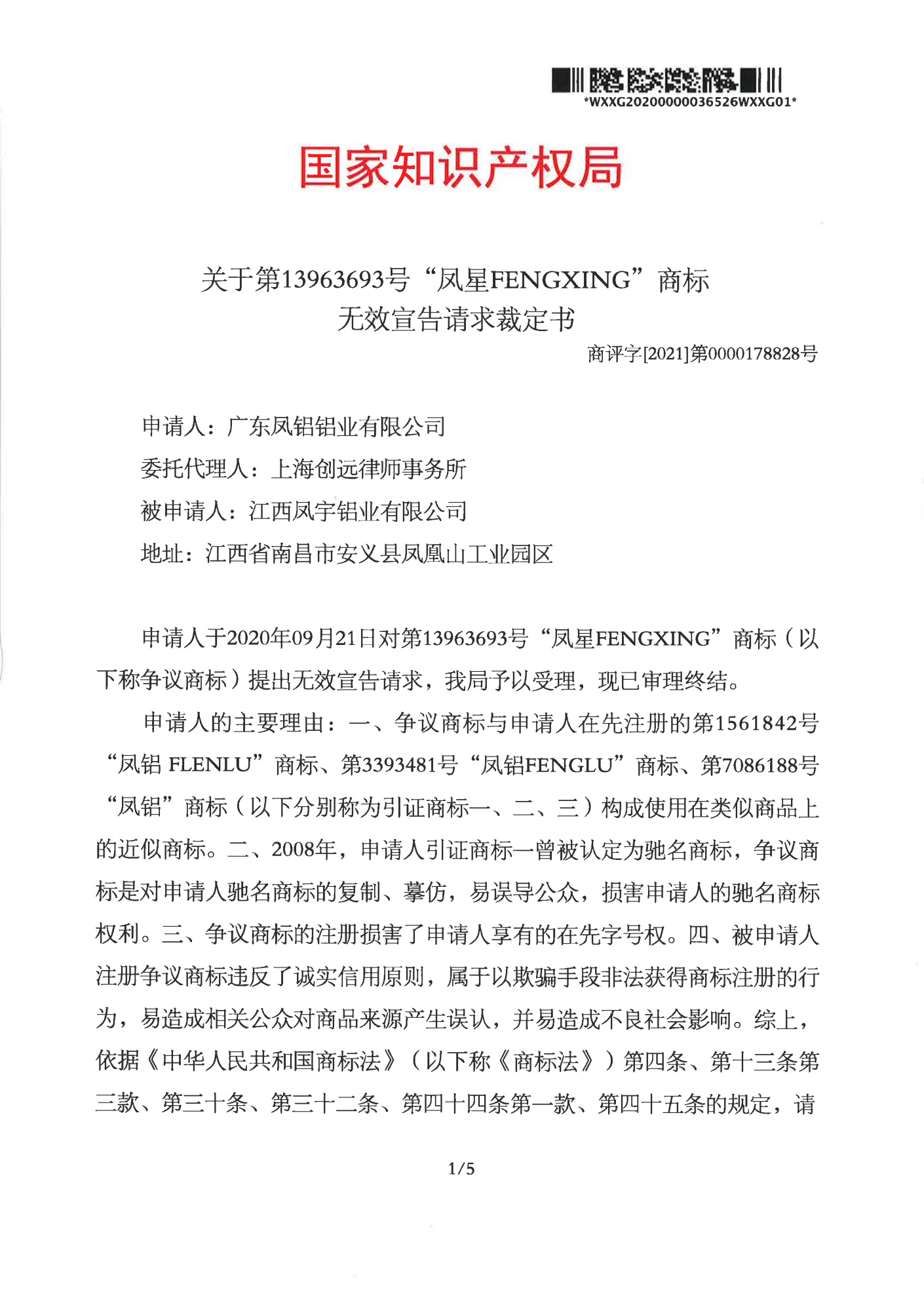 德宏辉知队 | 国家知识产权局:“凤星”商标无效