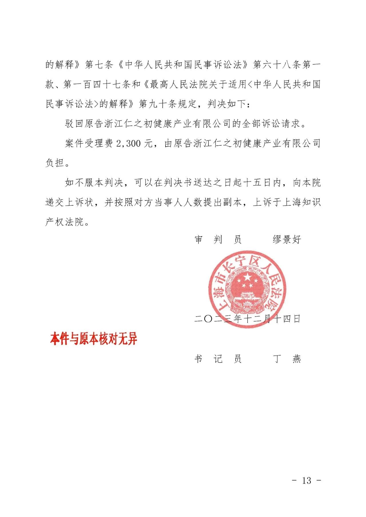 德宏辉知胜诉佳讯 | “仁之初健康”著作权及不正当竞争纠纷案,法院:驳回全部诉讼请求!